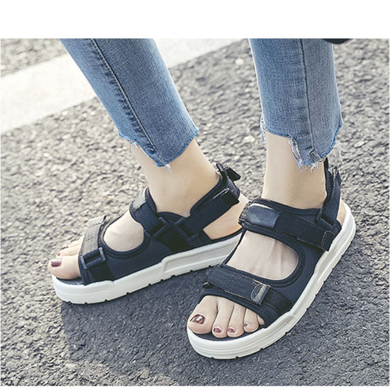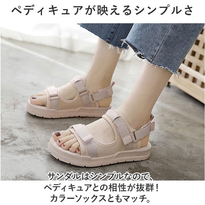 ・シンプルでラフな印象のスポーツサンダル。甘すぎないので合わせやすく、今っぽいスタイルに☆