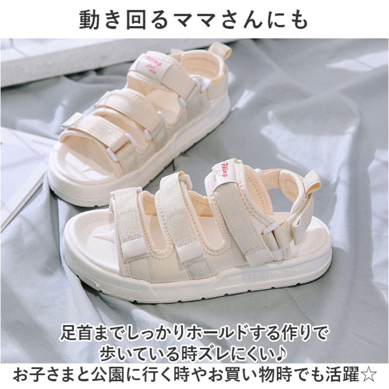 ・足首までしっかりホールドする作りで歩いている時ズレにくい♪お子さまと公園に行く時やお買い物時でも活躍☆