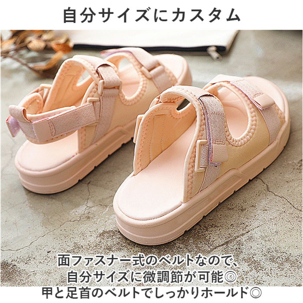 ・面ファスナー式のベルトなので、自分サイズに微調節が可能◎甲と足首のベルトでしっかりホールド◎