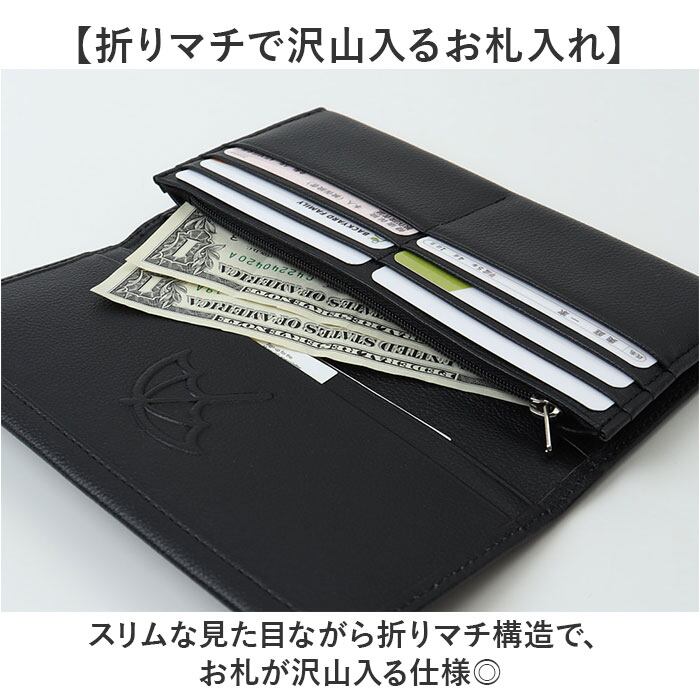 ・スリムな見た目ながら折りマチ構造で、お札が沢山入る仕様◎