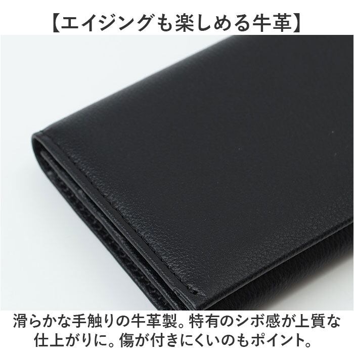 ・滑らかな手触りの牛革製。特有のシボ感が上質な仕上がりに。傷が付きにくいのもポイント。