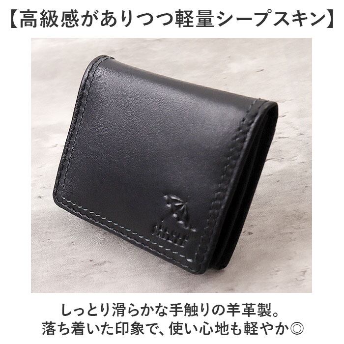 ・しっとり滑らかな手触りの羊革製。落ち着いた印象で、使い心地も軽やか◎