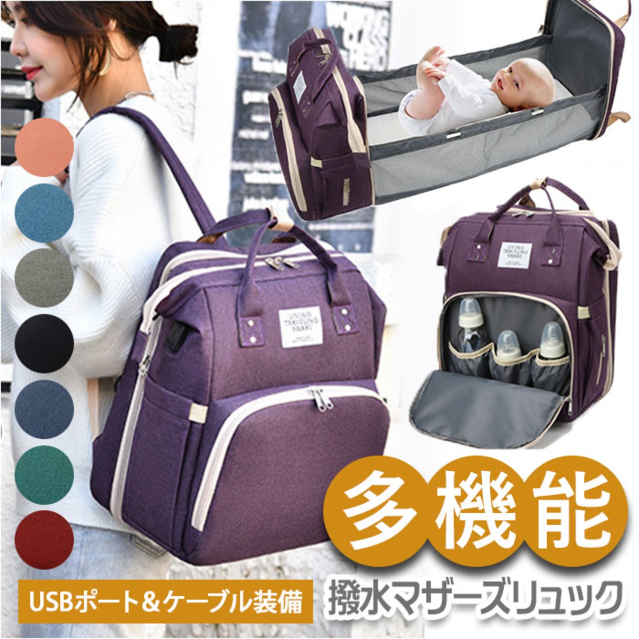 ・開くとベビーベッドに変身!機能的なマザーズリュックが登場。