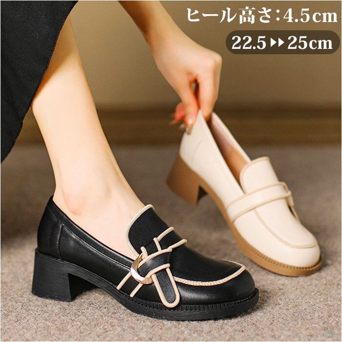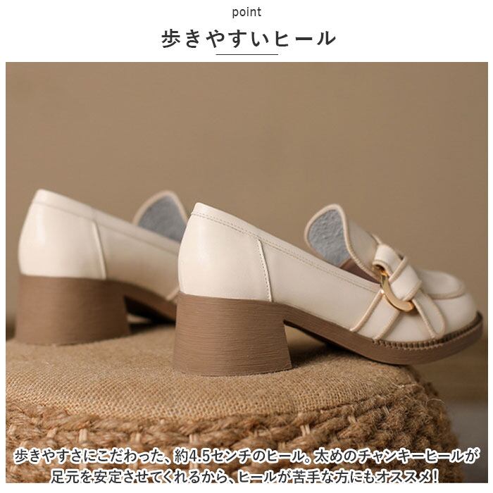 ローファー 靴 レディース 通販 パンプス 4.5cm ヒール ラウンドトゥ 合皮 PU 抗菌 消臭 軽量 柔らか らくちん らく シンプル 滑り止め すべり止め 柔らかい やわらかい 通学 通勤
