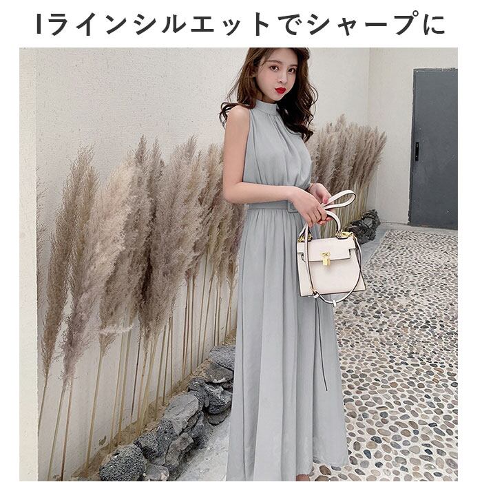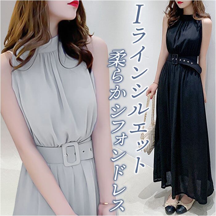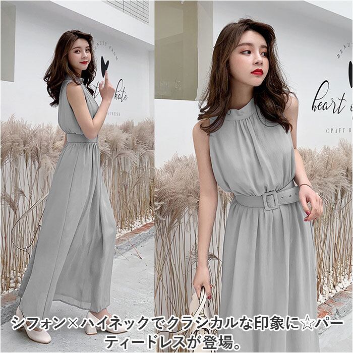 パーティードレス ドレス ワンピース 通販 ワンピ フォーマルドレス フォーマル ロング マキシ ロング丈 マキシ丈 袖なし 袖無し そでなし そで無し ベルト付 ハイネック ノースリーブ シフォン 大人 きれいめ おしゃれ 上品 セレモニー お呼ばれ