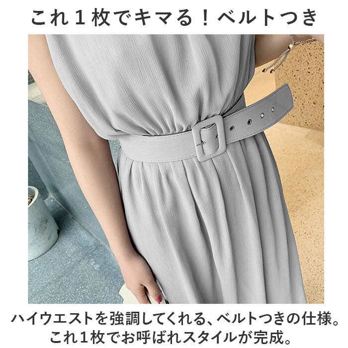 ・ハイウエストを強調してくれる、ベルトつきの仕様。これ1枚でお呼ばれスタイルが完成。