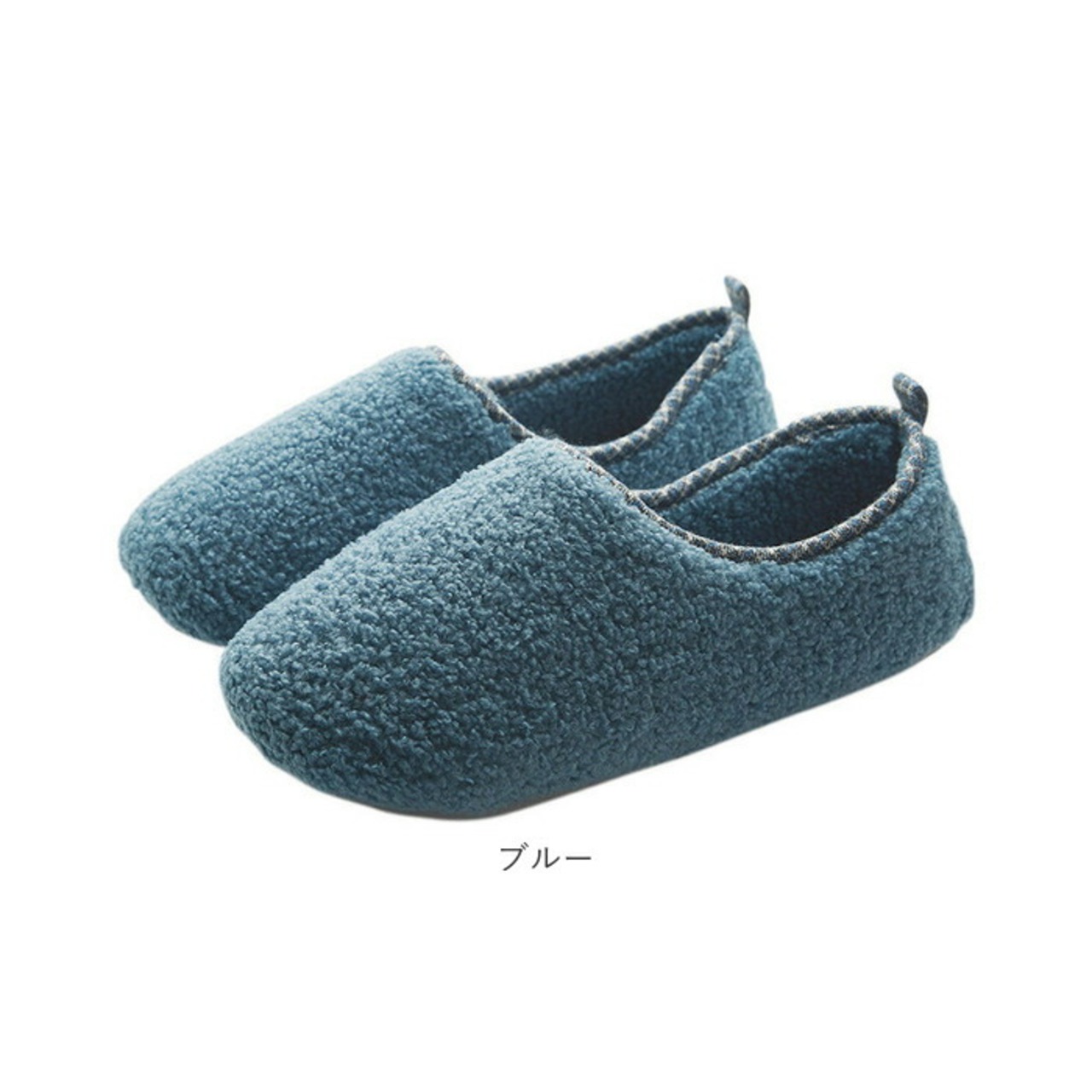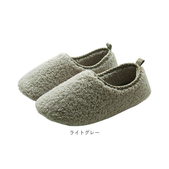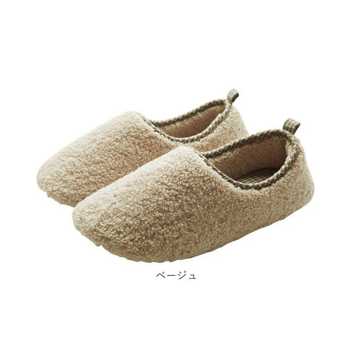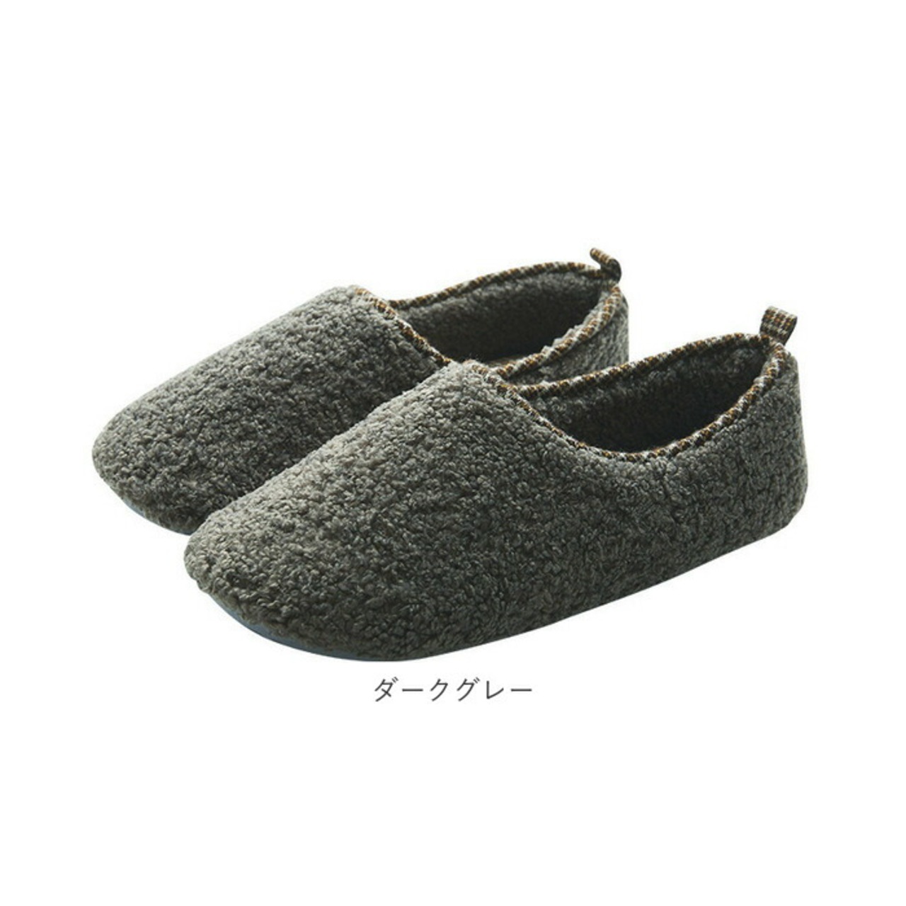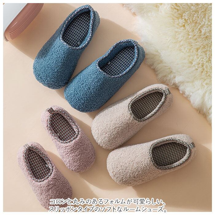 ・コロンと丸みのあるフォルムが可愛らしい、スリッポンタイプのソフトなルームシューズ。