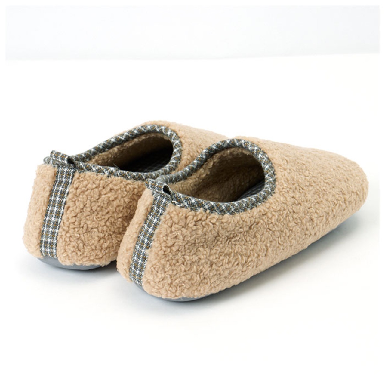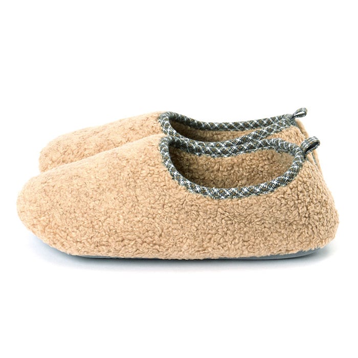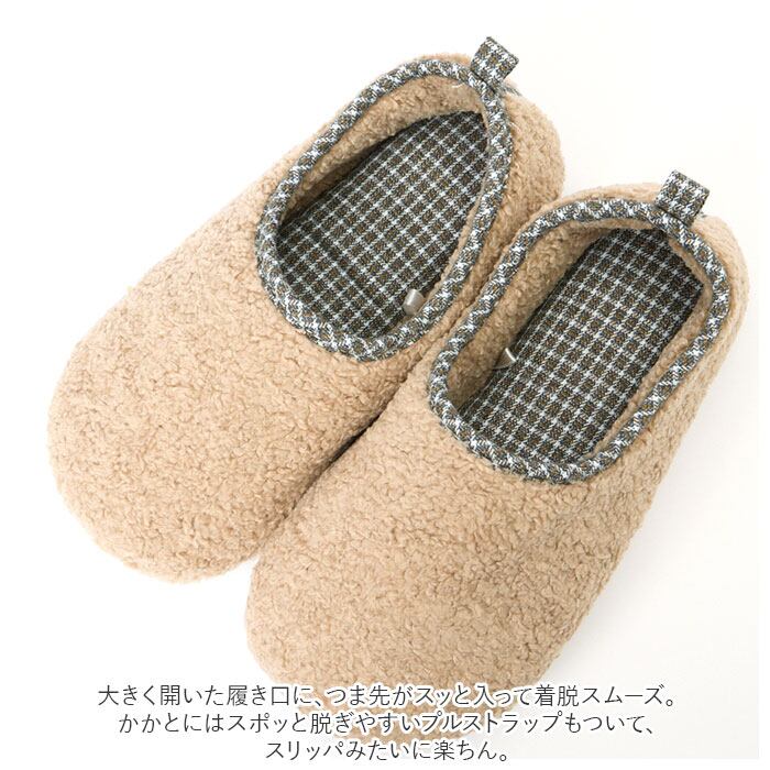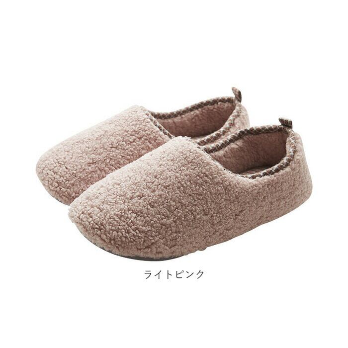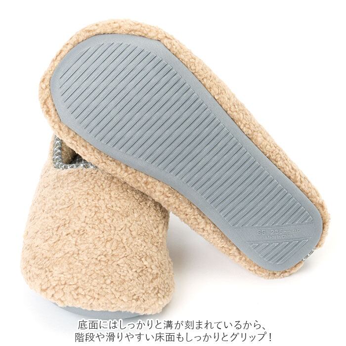 ・コロンと丸みのあるフォルムが可愛らしい、スリッポンタイプのソフトなルームシューズ。