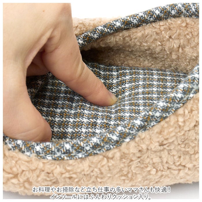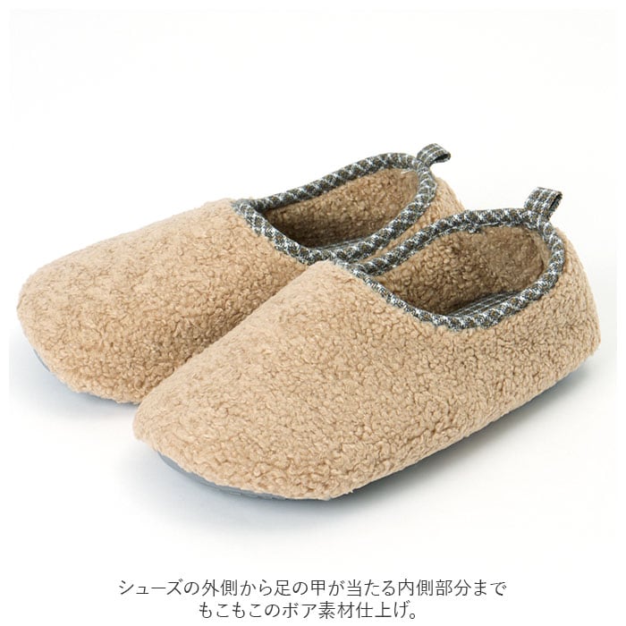・シューズの外側から足の甲が当たる内側部分までもこもこのボア素材仕上げ。つま先からかかとまですっぽり包んで、ポカポカの暖かさをキープ♪