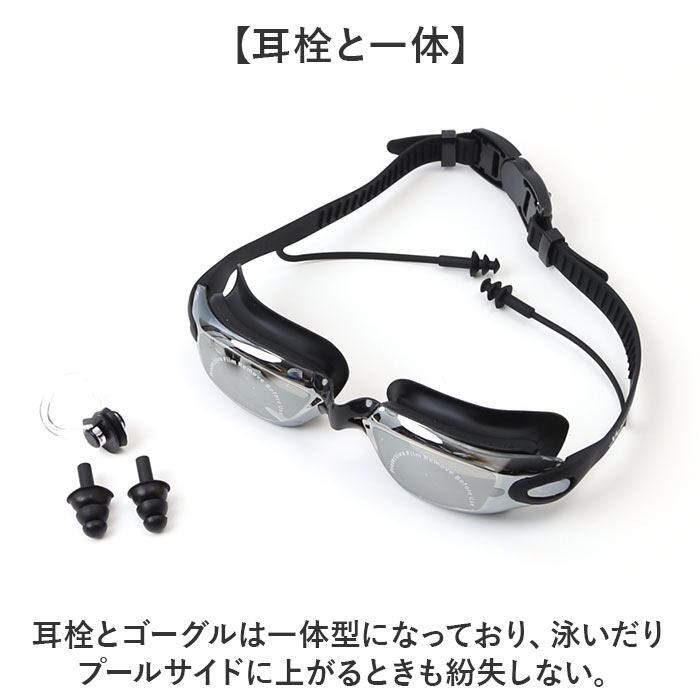 ・耳栓とゴーグルは一体型になっており、泳いだりプールサイドに上がるときも紛失しない。