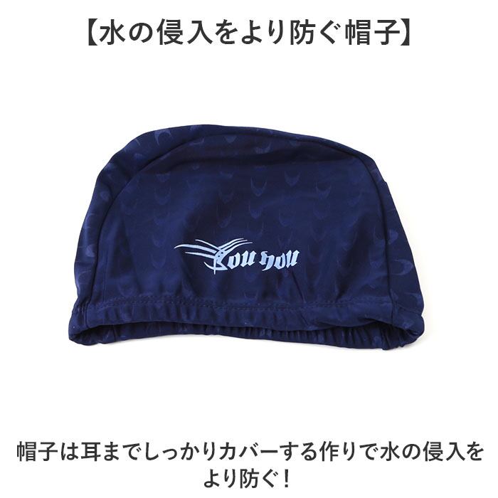 ・帽子は耳までしっかりカバーする作りで水の侵入をより防ぐ!