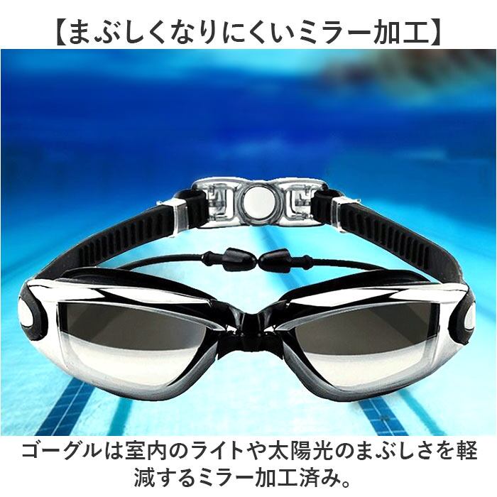 ・ゴーグルは室内のライトや太陽光のまぶしさを軽減するミラー加工済み。