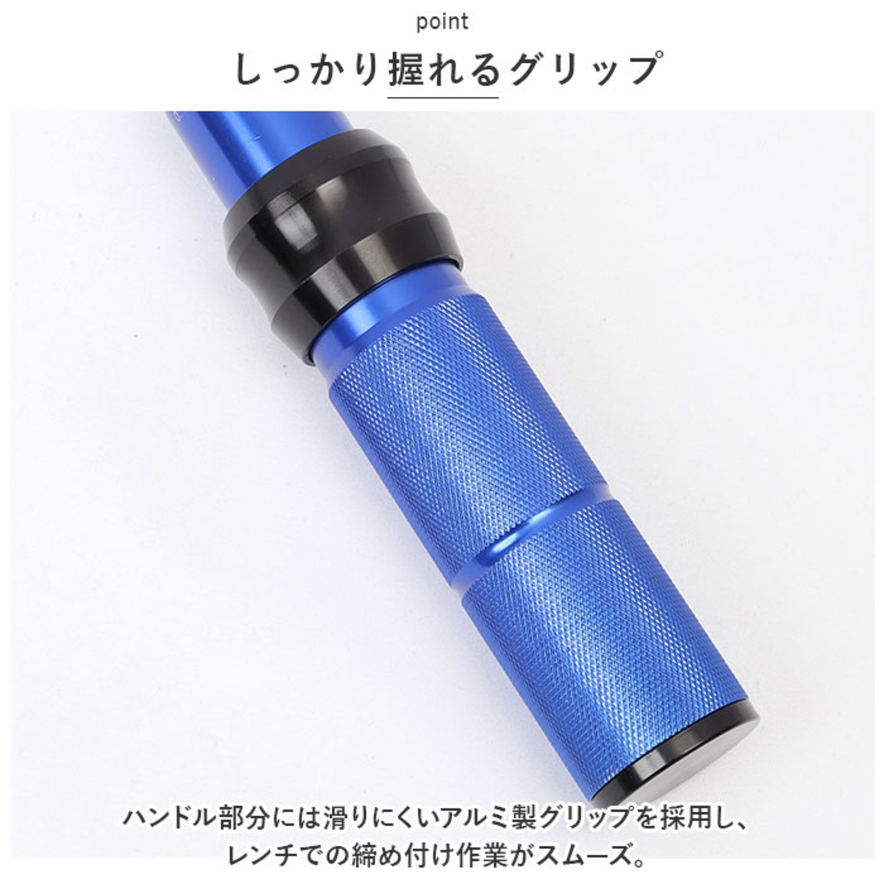 ・ハンドル部分には滑りにくいアルミ製グリップを採用し、レンチでの締め付け作業がスムーズ。