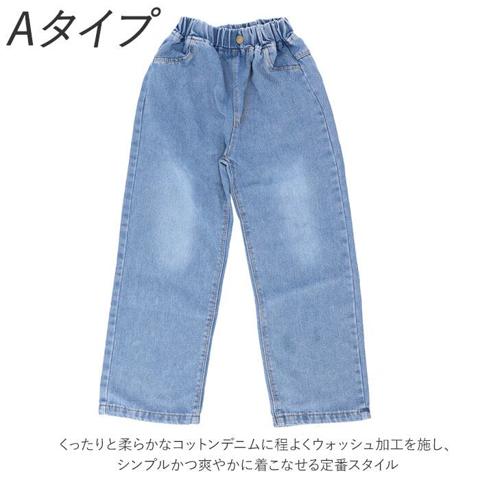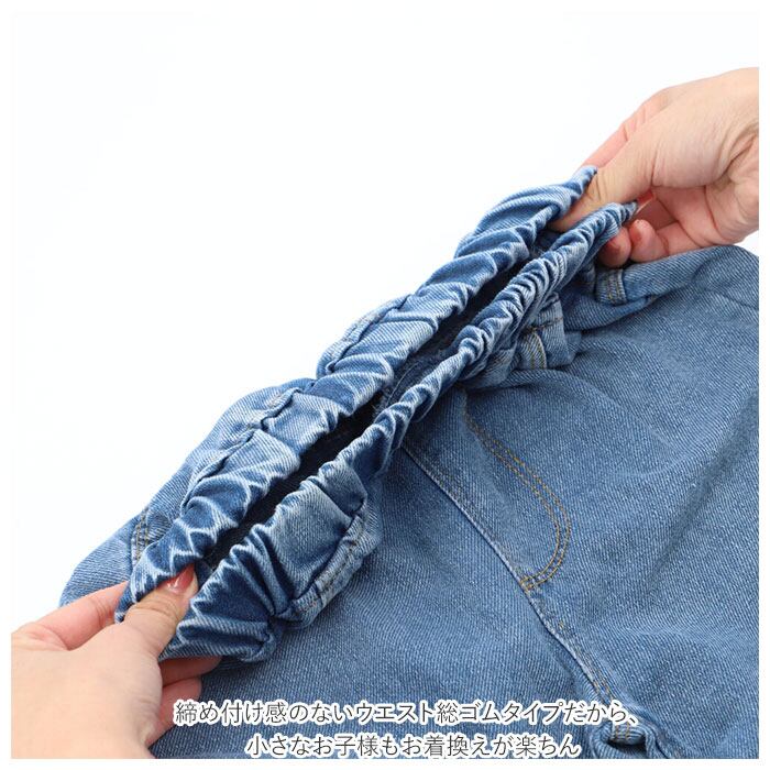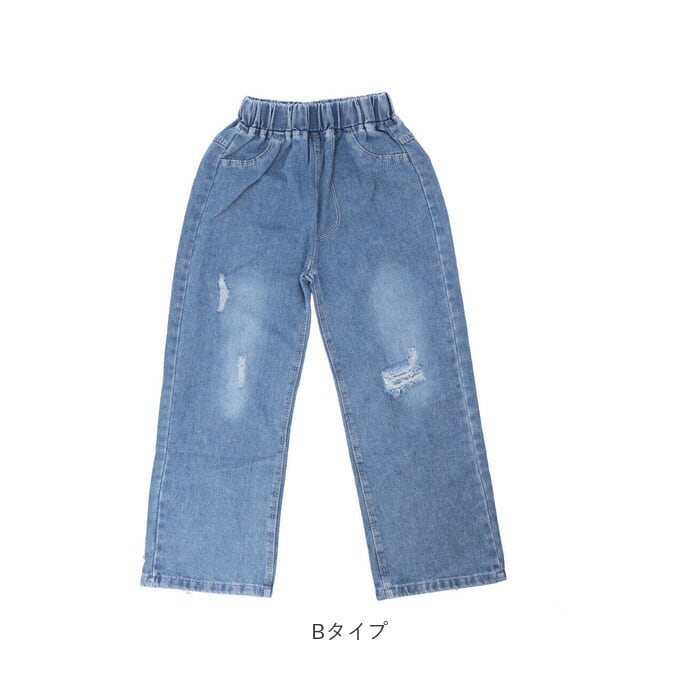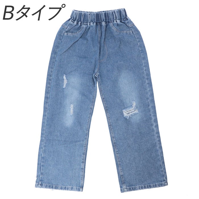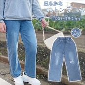 ワイドパンツ レディース 通販 キッズ デニム ジーパン ワイド ロングパンツ ウエストゴム パンツ 幅広 やわらか ジュニア 子ども 子供 こども ダメージ加工 かわいい 女の子 秋 冬