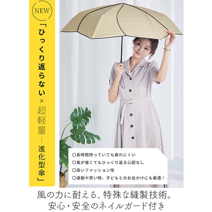 ・風の力に耐える、特殊な縫製技術。ひっくり返らず、安心して使えるのもポイント。