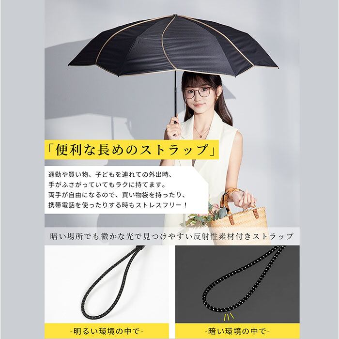 ・お買い物や子連れ外出、スマホを使う時もラクに持てる長めのストラップ。反射材もプラス。
