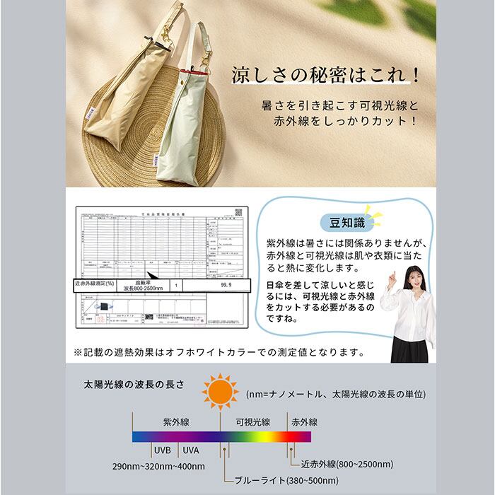 ・遮光率、UVカット率100%!外生地は太陽光・太陽熱・紫外線を反射し、お肌を守る◎