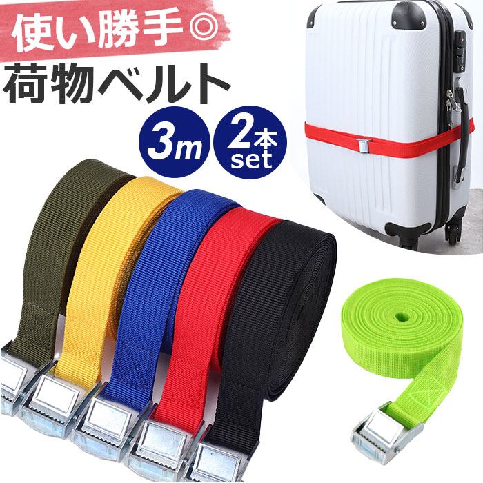 荷物 固定 ベルト 通販 荷締めベルト バックル 2本セット 台車 荷台 キャリア 固定ベルト 荷締バンド 固定バンド 結束バンド しなやか 強力 3m 幅25mm キャンプ アウトドア 自転車 バイク 車 引っ越し 運搬 家具 荷造り 地震 対策 バンド