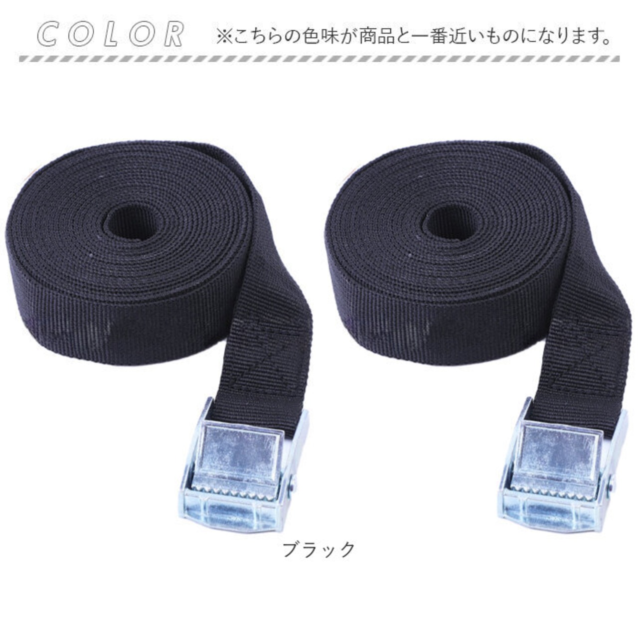 ・荷崩れ防止、家具の開き防止、キャンプやスポーツ器具の固定に便利な荷物ベルト。