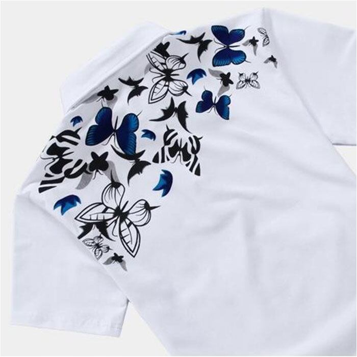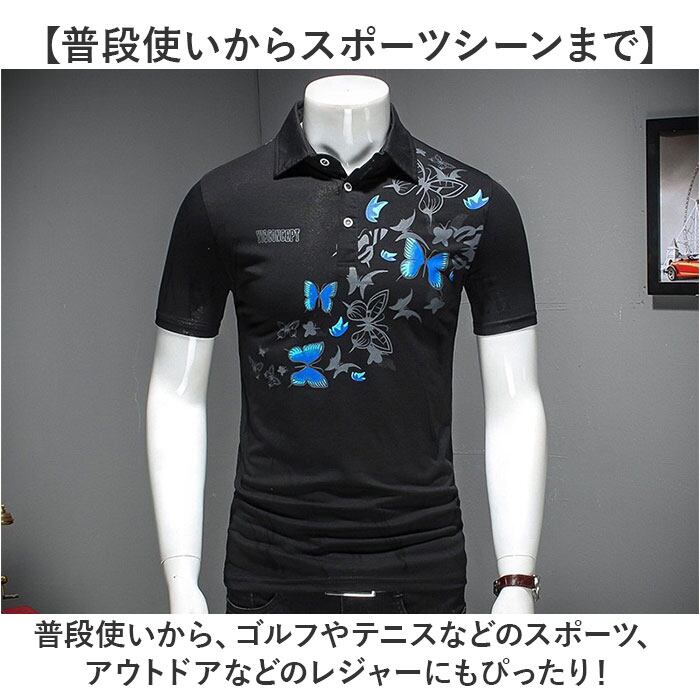 ・美しく飛び立つ蝶をあしらったデザインで、色めく大人っぽさ♪「半袖ポロシャツ」が登場。