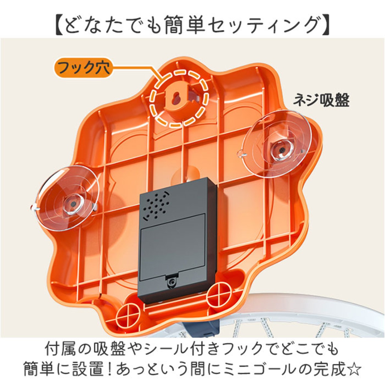 ・付属の吸盤やシール付きフックでどこでも簡単に設置!あっという間にミニゴールの完成☆