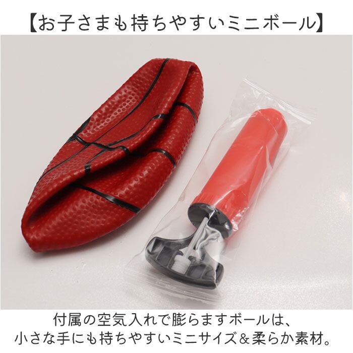 ・付属の空気入れで膨らますボールは、小さな手にも持ちやすいミニサイズ&柔らか素材。
