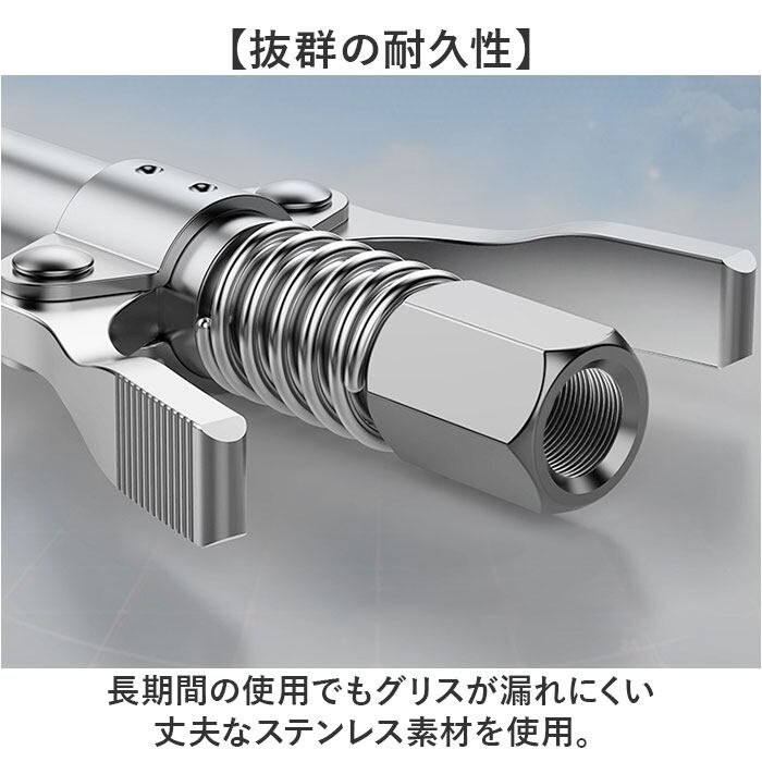 ・長期間の使用でもグリスが漏れにくい丈夫なステンレス素材を使用。