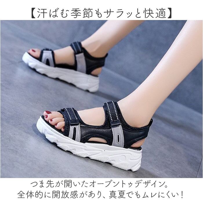 ・つま先が開いたオープントゥデザイン。全体的に開放感があり、真夏でもムレにくい!