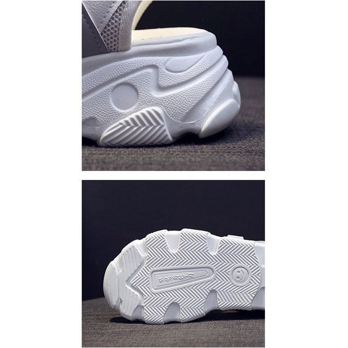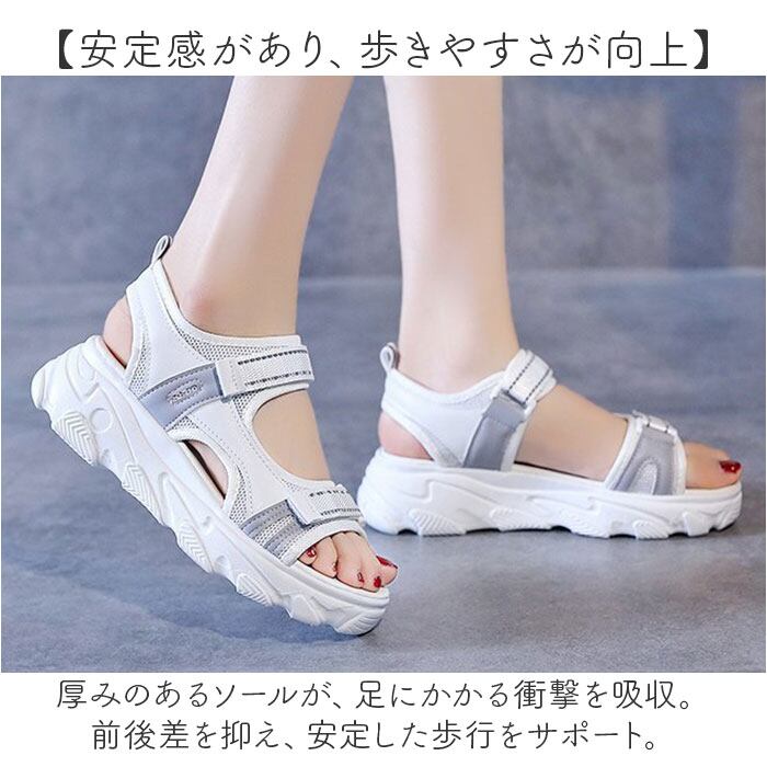 ・厚みのあるソールが、足にかかる衝撃を吸収。前後差を抑え、安定した歩行をサポート。