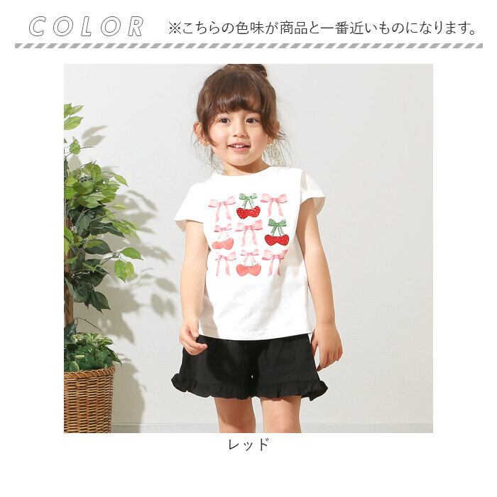 ・プリントされたリボン&キラッと輝いて立体感のあるチェリーモチーフ♪可愛さ満点のTシャツ。
