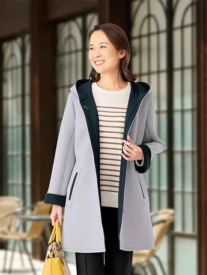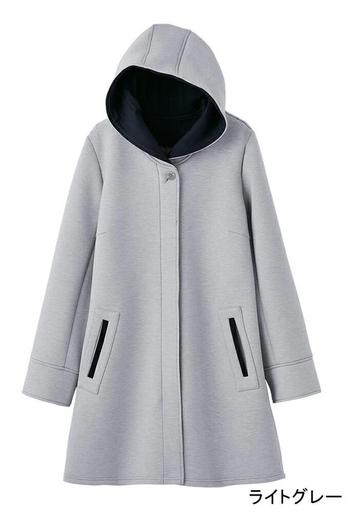 ・ボクシーシルエットのフーデットデザインで、フェミニンな雰囲気に。 フードは立体感があり、顏周りにボリュームを持たせたデザインで小顔効果。