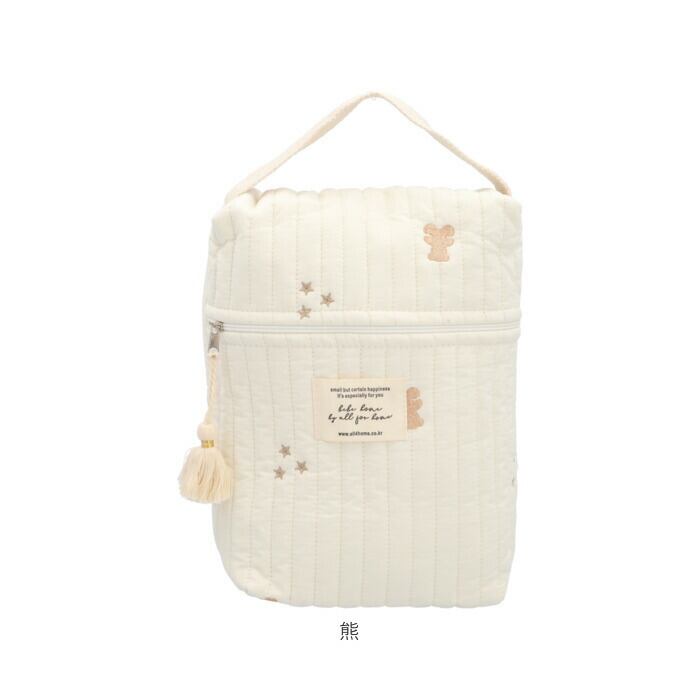 ・ふんわりとしたキルティング生地に、ロゴタグや刺繍デザインをプラス。ママが持っていても、テンションの上がるデザインがポイント。