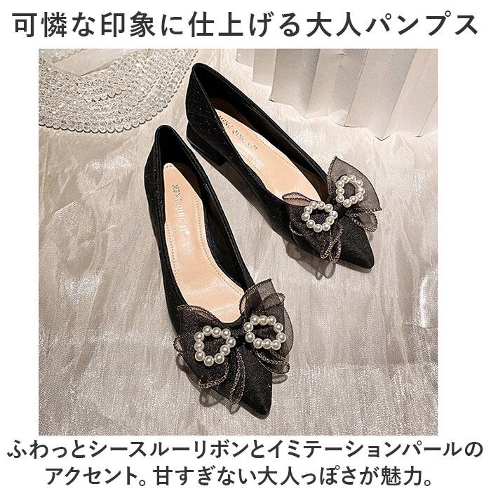 ビジュー パンプス リボン 通販 レディース ローヒールパンプス 靴 シューズ ポインテッドパンプス ヒール3cm ゴム底 おしゃれ お洒落 歩きやすい かわいい 可愛い レディースシューズ レディース靴 フォーマル ビジネス 通勤 オフィス 二次会 婦人靴