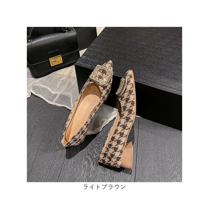 ビジュー パンプス 通販 靴 シューズ ローヒールパンプス 千鳥格子 レディース 歩きやすい ポインテッドパンプス ヒール3cm おしゃれ お洒落 ゴム底 婦人靴 かわいい レディースシューズ フォーマル ビジネス 通勤 オフィス 二次会 レディース靴