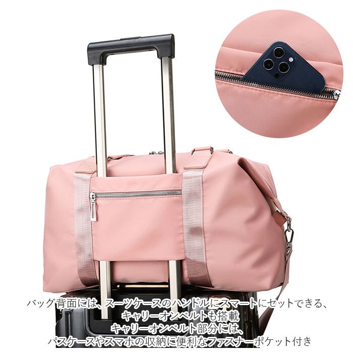 ・キャリーオンベルト部分には、パスケースやスマホの収納に便利なファスナーポケット付き。(※スマートフォンのサイズによっては収納できない場合がございます。)