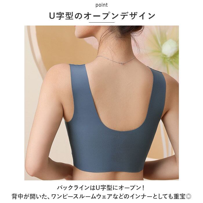 ・バックラインはU字型にオープン!背中が開いた、ワンピースルームウェアなどのインナーとしても重宝◎