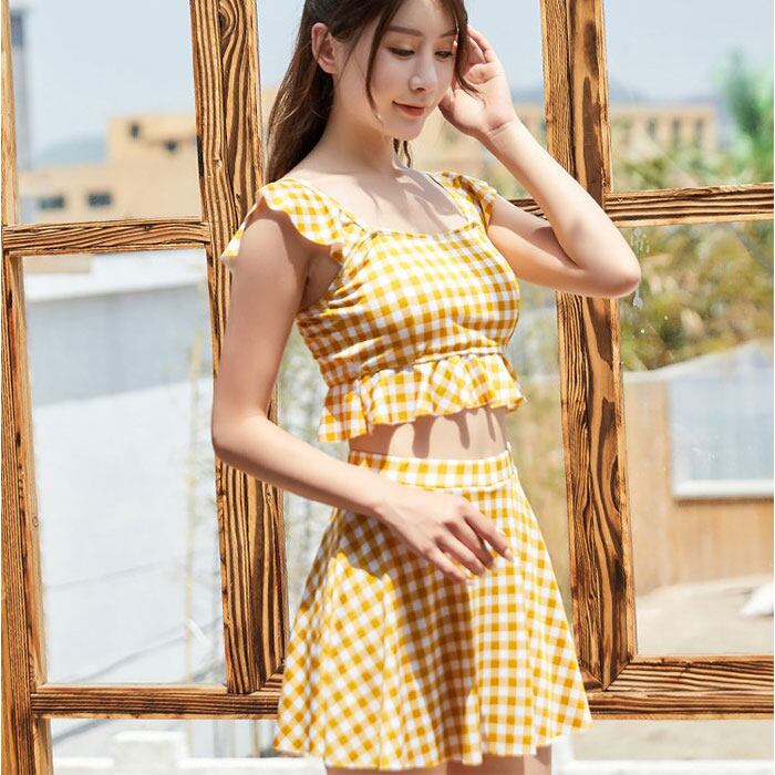・リゾートや夏のレジャーに映える、ギンガムチェックとフリルの組み合わせがたまらない♪