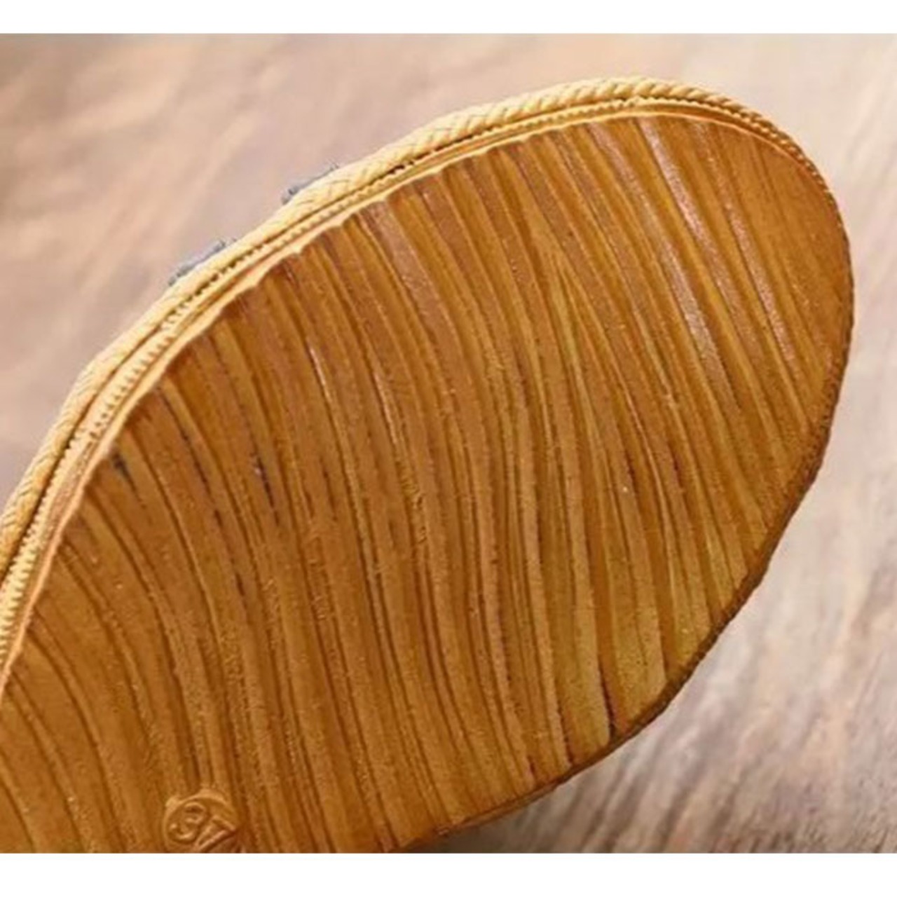 ・足首のストラップにはゴムが搭載され着脱がしやすい。サンダルだけど靴のようなフィット感。