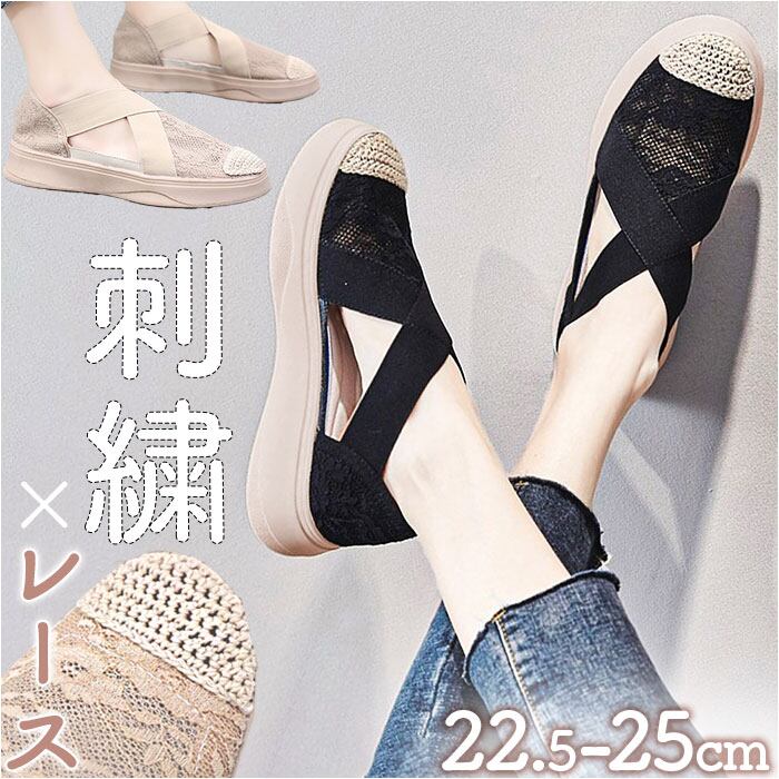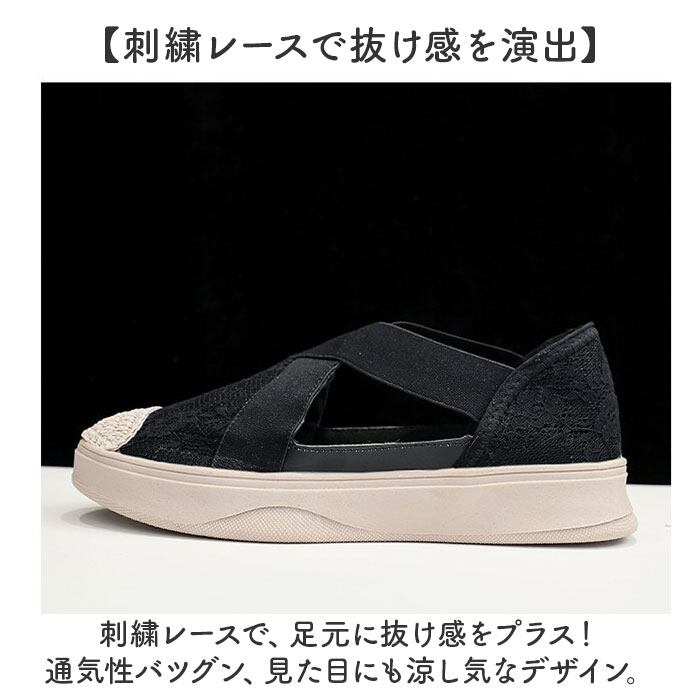 ・刺繍レースで、足元に抜け感をプラス!通気性バツグン、見た目にも涼し気なデザイン。