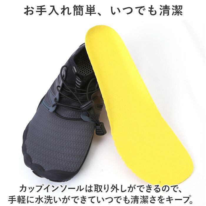 ・ジムでのトレーニングやランニングなどのフィットネスにはもちろん、サーフィンのような水辺のアクティビティーではマリンシューズとして大活躍。