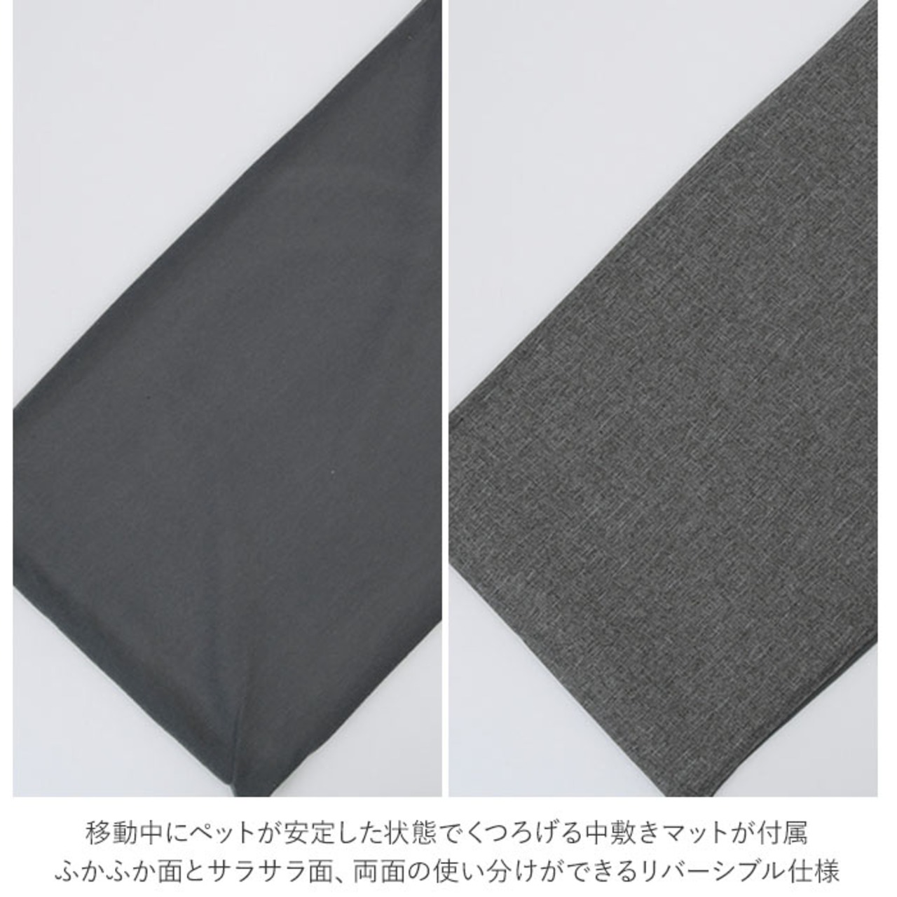 ・移動中にペットが安定した状態でくつろげる中敷きマットが付属。ふかふか面とサラサラ面、両面の使い分けができるリバーシブル仕様。