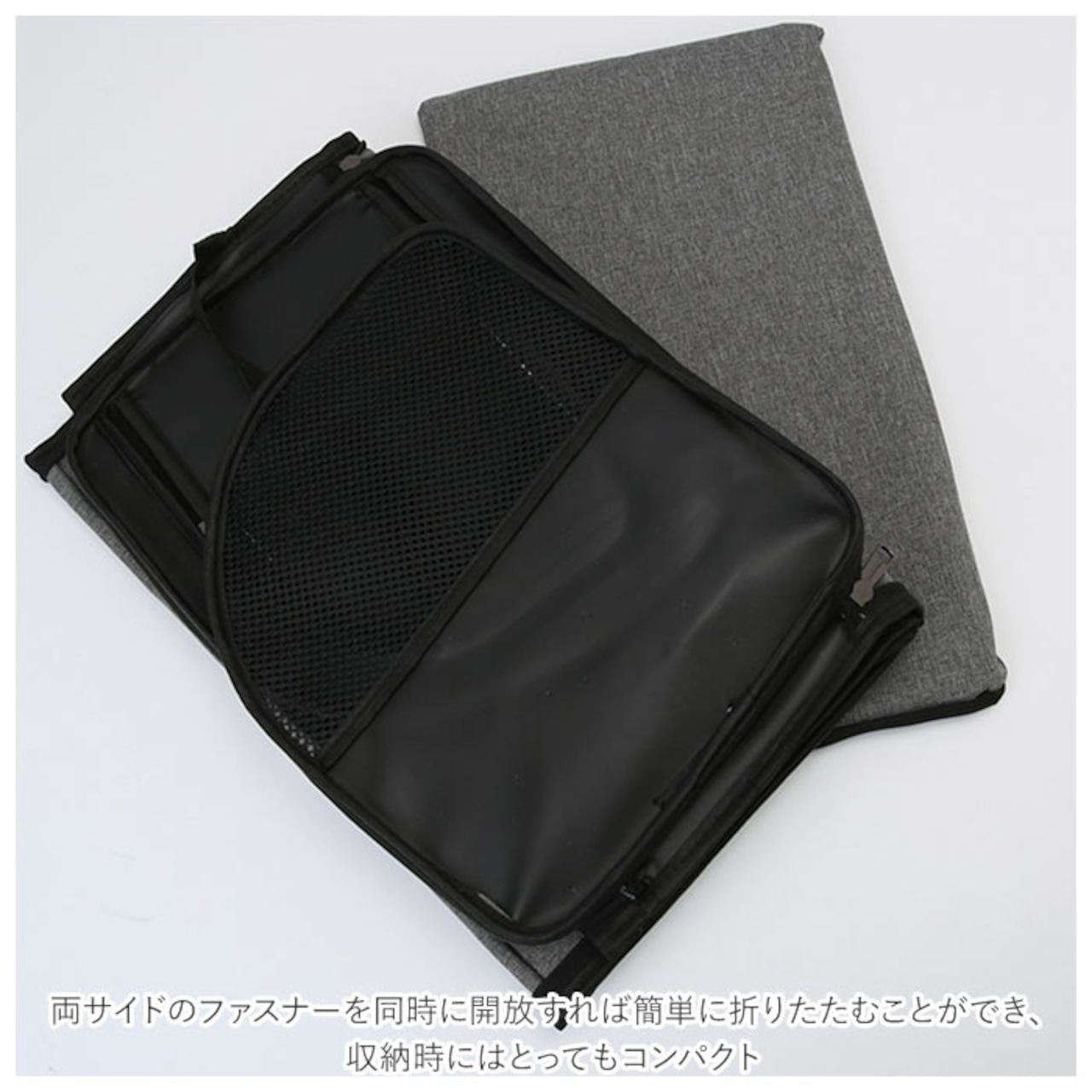 ・両サイドのファスナーを同時に開放すれば簡単に折りたたむことができ、収納時にはとってもコンパクト。