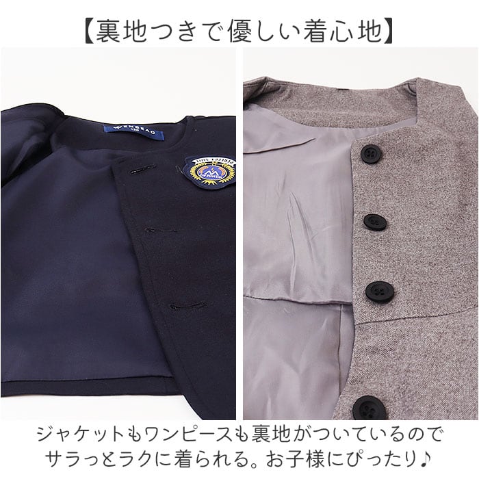 ・ジャケットもワンピースも裏地がついているのでサラっとラクに着られる。お子様にぴったり♪