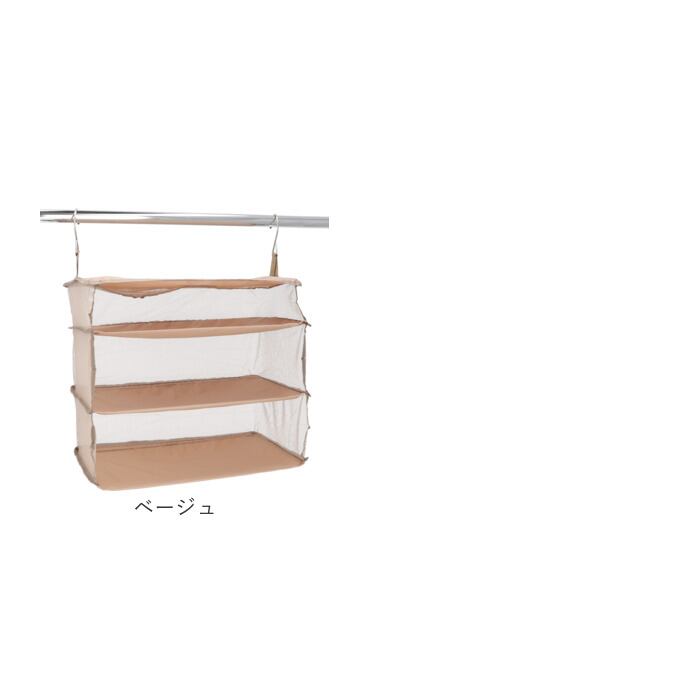 ・3層に分かれたメッシュ仕様の収納ルーム。シンプルな形状なので、お家の中の吊り下げ収納にも使えて便利。