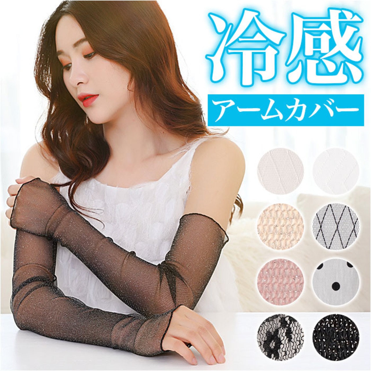・伸縮性があり、涼しい透け感のあるシースルータイプで腕から手首までしっかりカバー。