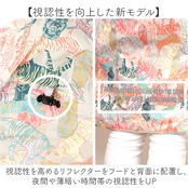 ・視認性を高めるリフレクターをフードと背面に配置し、夜間や薄暗い時間帯の視認性をUP