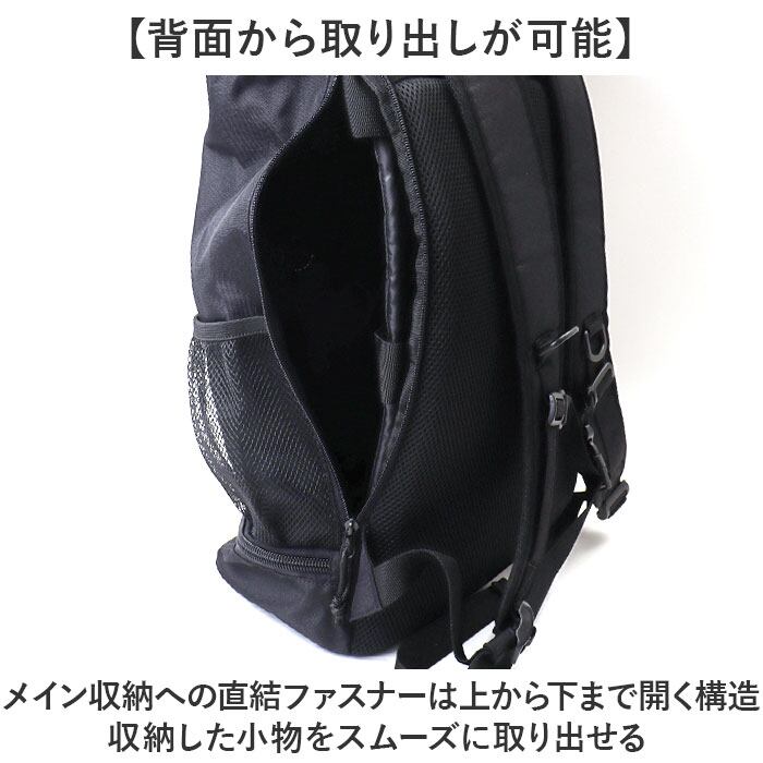 ・メイン収納への直結ファスナーは上から下まで開く構造◎収納した小物をスムーズに取り出せる