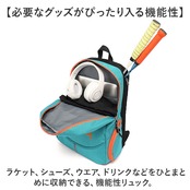 ・ラケット、シューズ、ウエア、ドリンクなどをひとまとめに収納できる、機能性リュック。