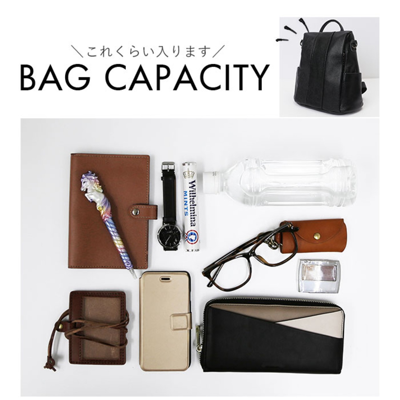 ・ふっくらと柔らかなレザーの質感と、シックなカラーのコンビネーションが大人カジュアルな服装に素敵にマッチ。通勤・通学用リュックや、女子旅用のサブバッグにもオススメ。