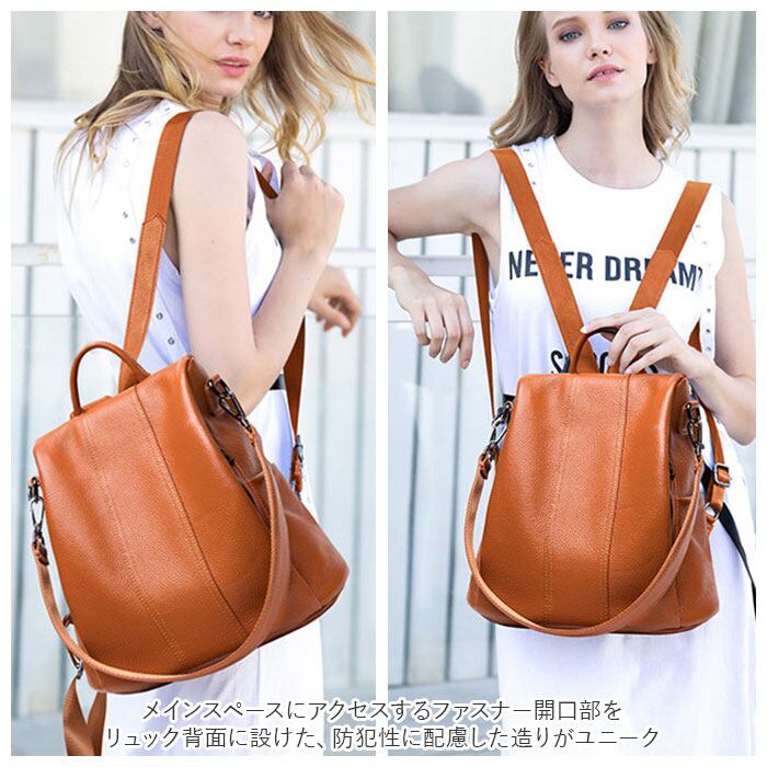 リュック レディース レザー 通販 リュックサック バックパック デイパック 2way ショルダー ショルダーバッグ ショルダーバック 肩掛け 背面ファスナー 防犯 セキュリティ 通勤 通学 革 本革 牛革 旅行 トラベル おしゃれ シンプル きれいめ 上品 レディースバッグ